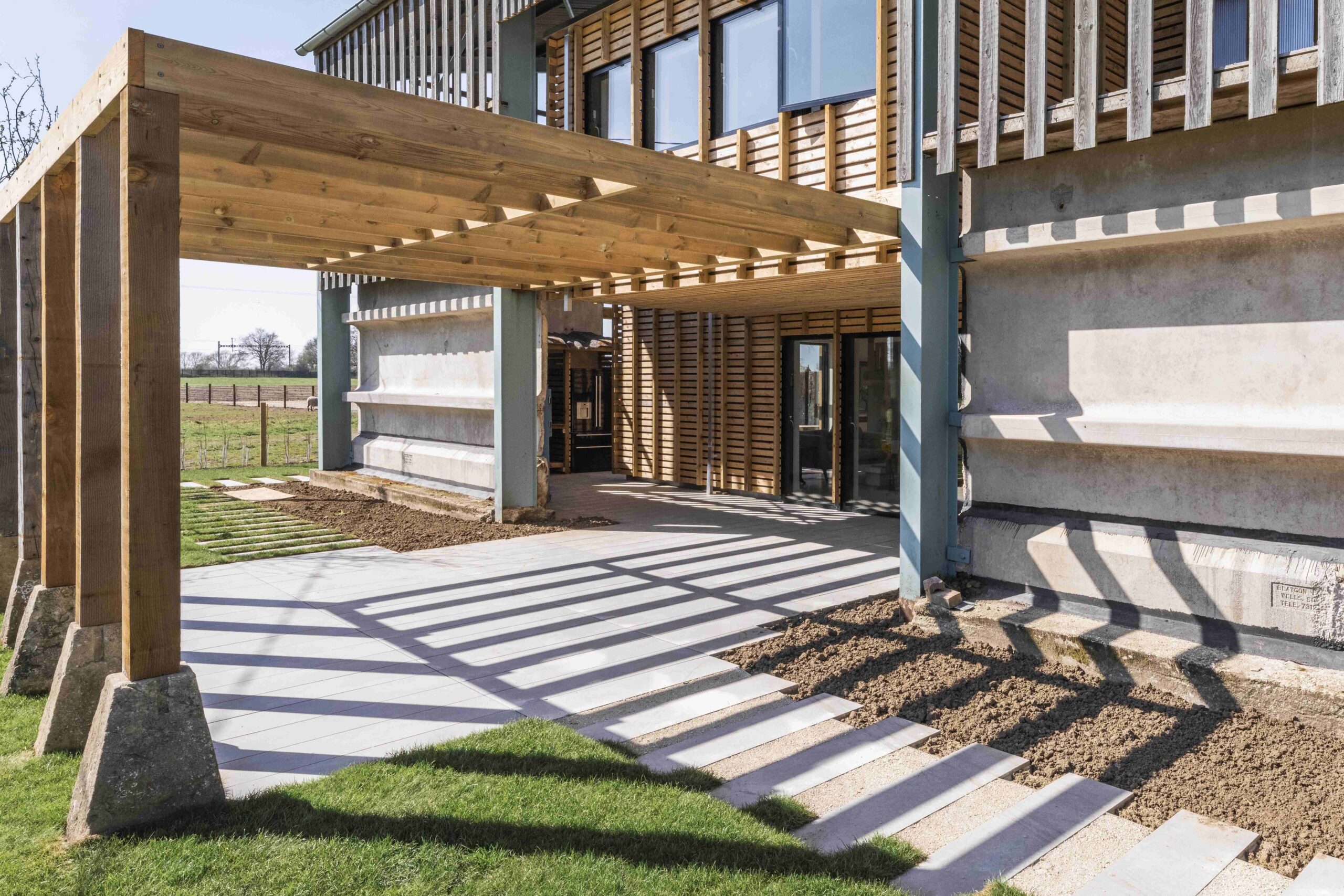 The front entrance of Steph and Chris’s barn conversion , which is built inside an existing modern barn. Image credit: Charles Emerson