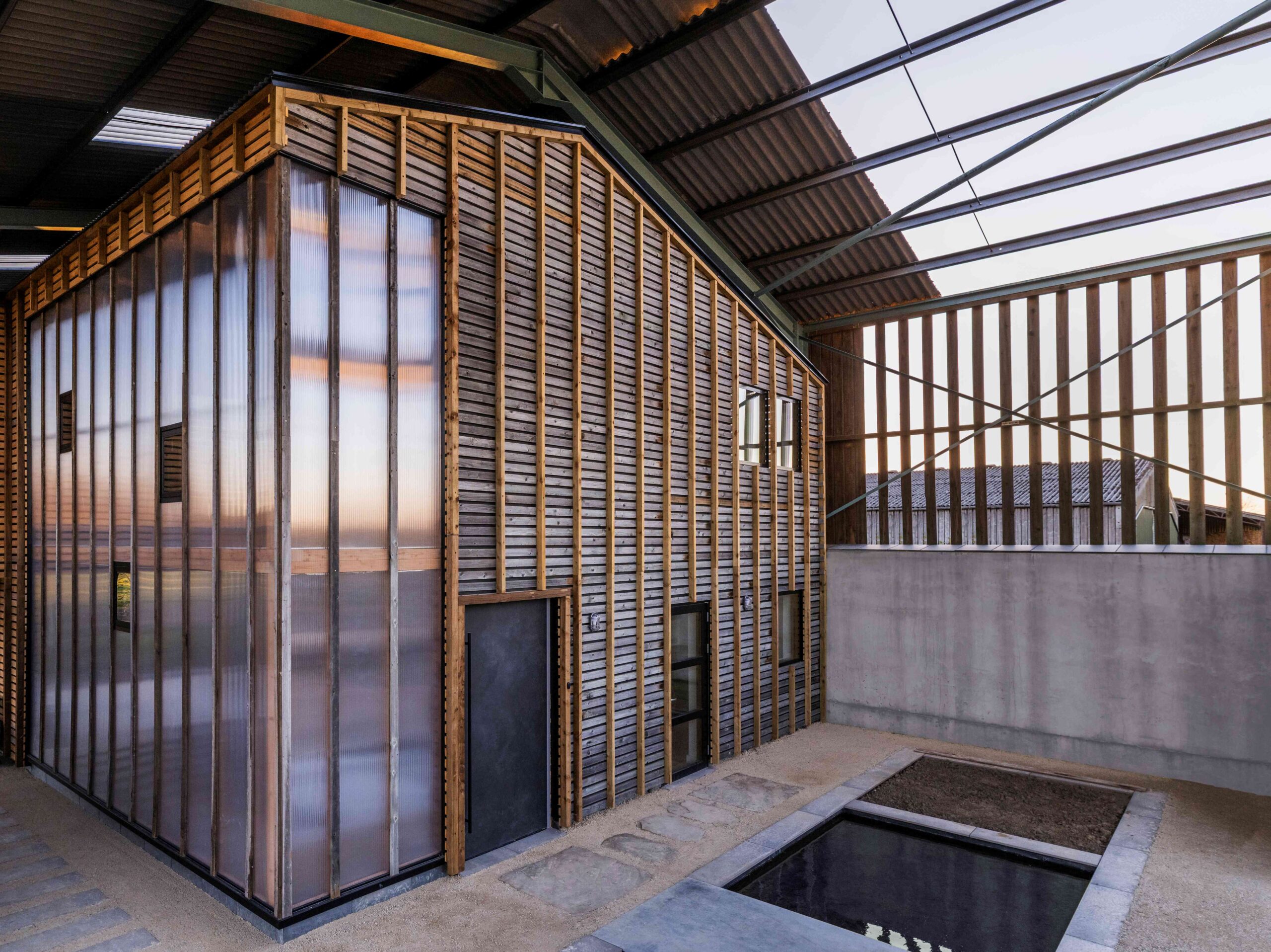 Yet inside sits the Green’s home, a new building clad in salvaged timber.