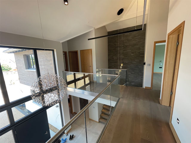 The focus in this contemporary self-build is on generous living spaces (there are three such spaces – snug, living room and movie room) while the bedrooms are more modest in size.