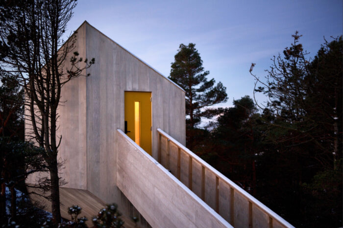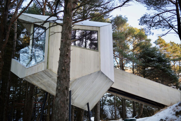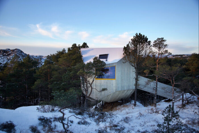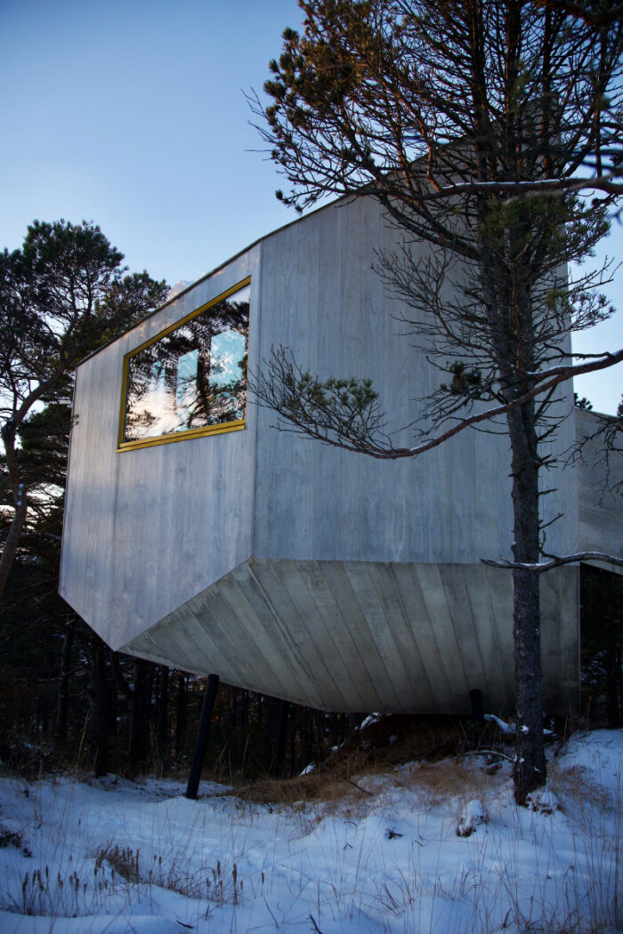 Floating in the forest canopy of rocky Rogoland, the cabins of Trekronå present a futuristic take on this protective function, offering guests a place of sanctuary from which to explore the rugged coastline.