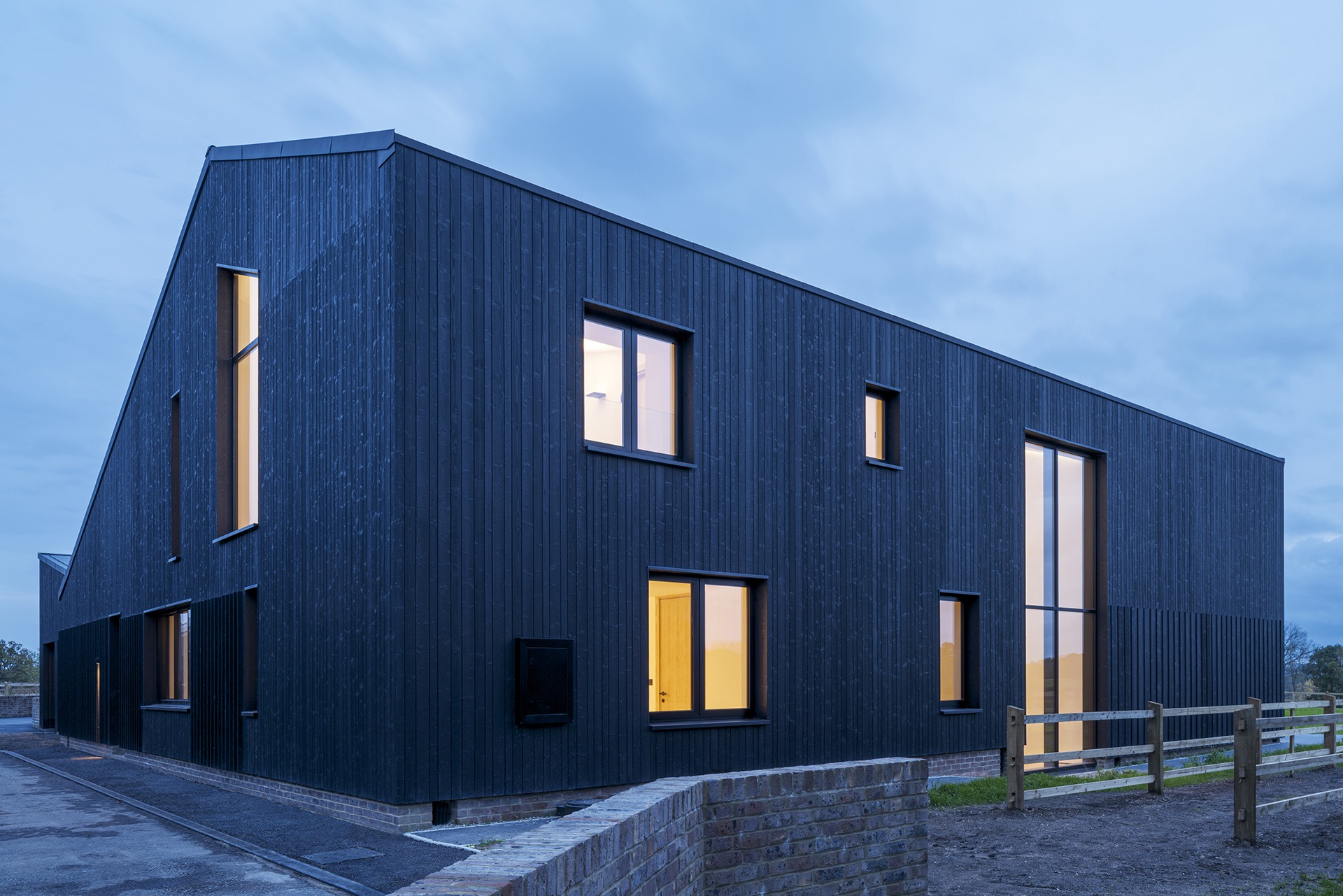 The charred spruce cladding is low maintenance and gives the barns their striking black appearance. Image credit: Gareth Gardner