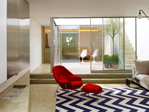 Further adding to this sense of delineated space, the utility is a room within a room, creating a side wall and cosy corner for the rear living room. This internal room is visually played down thanks to a hidden door, a detail borrowed from a far earlier period in architecture.